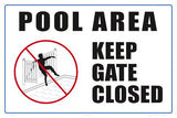 Pool Area Keep Gate Closed Sign - 18 x 12 Inches on Styrene Plastic