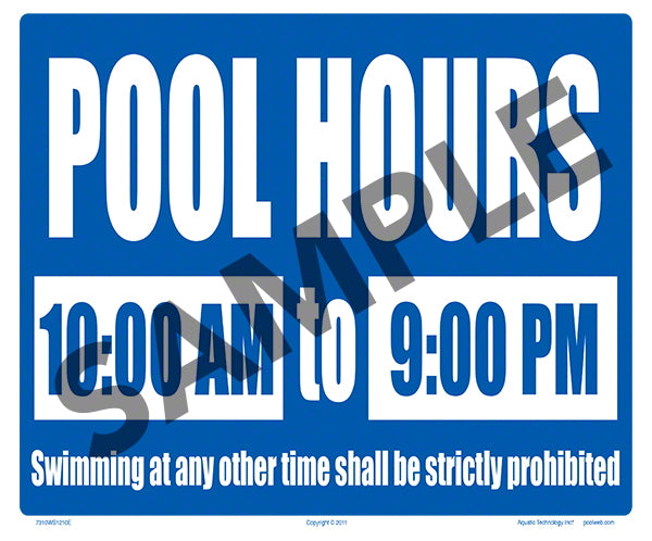 Pool Hours Sign - 12 x 10 Inches on Heavy-Duty Aluminum (Customize or Leave Blank)