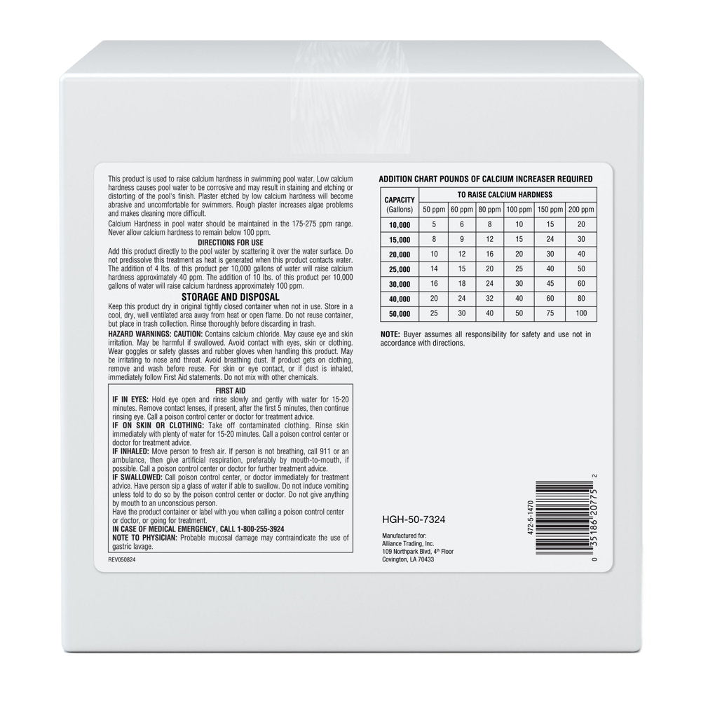 This is an 25 pound box of Pool Season Calcium Increaser. It is a granular product for raising calcium hardness. By adding this easy-to-use product, it will help protect corrosion on pool surfaces, plumbing, and equipment. It will also help prevent staining.