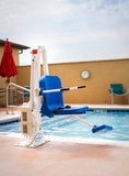 The Americans with Disabilities Act requires commercial and public pools nationwide to install an accessible means of entry into the swimming pool for anyone. This Aqua Creek pool lift provides people with disabilities with the ability to transfer from the pool deck to the pool water safely, comfortably, and independently. These lifts are also required by many state and local governments for compliance with local pool codes and laws.