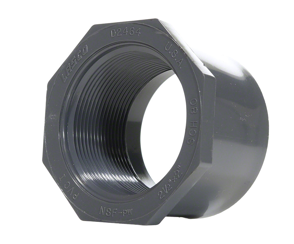 This is a PVC Schedule 80 Reducer Bushing with Spigot x FIPT fitting connections that measure 1 x 3/4 Inch.