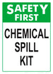 Safety First Chemical Spill Kit Sign - 10 x 14 Inches on Heavy-Duty Aluminum
