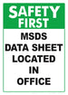 Safety First MSDS Data Sheet Sign - 10 x 14 Inches on Styrene Plastic