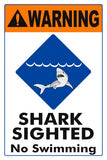 Shark Sighted Warning Sign - 12 x 18 Inches on Styrene Plastic