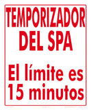 Spa Timer Sign in Spanish - 10 x 12 Inches on Styrene Plastic