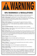 Warning Spa Warnings and Regulations. This is a heavy-duty aluminum sign and the lettering height on this sign meets specific state code. This sign is guaranteed to meet the state laws of Alabama, Alaska, Arizona, Idaho, Louisiana, Maine, Michigan, Minnesota, Mississippi, Montana, North Dakota, Oklahoma, Pennsylvania, Tennessee, Texas and West Virginia.Our compliance signs are thoroughly researched twice yearly and updated as needed. We guarantee our rules and regulations signs to meet specific state swimming pool codes within ninety days of purchase or they will be replaced, free of charge.