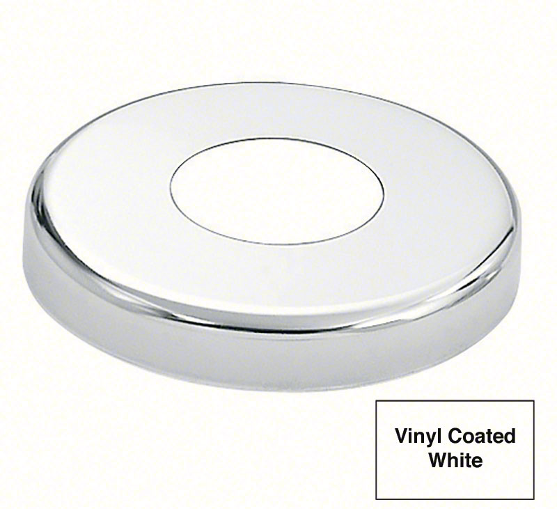 The S.R. Smith vinyl coated stainless steel escutcheon plate in white is designed for 1.90 inch O.D. rails in salt water pools. The vinly coating in white provides an added layer of protection to ensure your railing parts have a long life with the exposure to salt water. The plate is 4.5 inches in diameter.