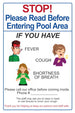 Safety Notification signs are used at aquatic facilities to notify patrons of extra precautions that should be taken or other information related to safety concerns. This Stop! Read Before Entering sign is designed to prevent the spread of COVID-19 and should be posted when needed.