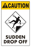 Sudden Drop Off Caution Sign - 12 x 18 Inches on Styrene Plastic