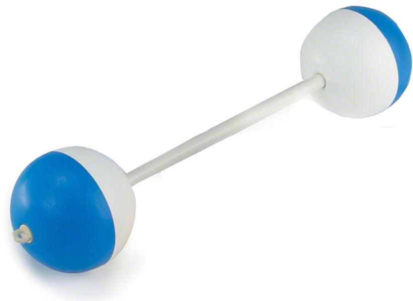 This is a Pentair #58 Swim Teacher Barbell. It has two 7 x 7 inch polyethylene floats, one on each end. The bar measures 30 inches and is made of PVC.