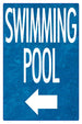 Swimming Pool Arrow Left (Water Background) Sign - 12 x 18 Inches on Styrene Plastic $18.66 (Save $12.17)