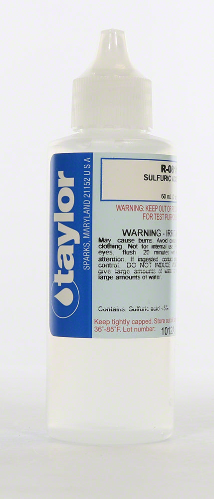 This is a Taylor Sulfuric Acid .24N replacement reagent for various Taylor pool water testing kits. This replacement reagent has a bottle size of 2 ounces. These reagents are designed to provide accurate and easy to read results.This item is used to test TDS with Taylor Kits - K-1764 (Instr. #5074).