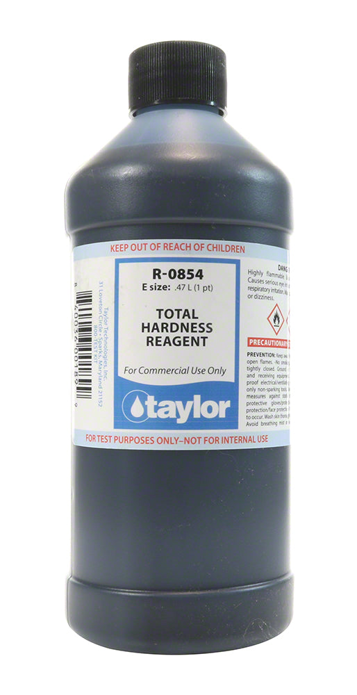 This is a Taylor Total Hardness replacement reagent for various Taylor pool water testing kits. This replacement reagent has a bottle size of 16 ounces. These reagents are designed to provide accurate and easy to read results.It is used for Calcium Hardness testing in Taylor Kits.