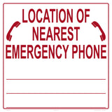 Our variety of telephone Signs are used to instruct individuals on the emergency number to call, the facility location, and/or the telephone location. Most states have a specific telephone sign as a requirement per state code. This Location of Nearest Emergency Phone sign is a requirement for Texas and has code required lettering height.