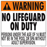 This Texas Warning No Lifeguard On Duty (14 Years And Under) aluminum sign measures 24 x 24 inches, is printed on heavy-duty aluminum material, and is designed to warn patrons to not allow persons under age 14 to use the pool or spa unattended. The lettering height is 4 inch and 2 inch and meets Texas state code. Our Warning signs indicate a potentially hazardous situation which, if not avoided, could result in death or serious injury. This sign is lightweight, durable and weatherproof for indoor or outdoor use.This swimming pool and facility pool sign is designed for harsh swimming pool and outdoor environments. It is predrilled in each corner for easy hanging or mounting. This sign is printed using our high-quality weather and sun resistant inks.
