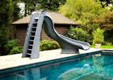This is a right turn TurboTwister Water Slide in Gray Granite with a seat height of 7 feet and standing a full 8 feet 7 inches to the top hand rails. Designed for inground residential pools, the slide will accommodate children and adults up to 275 pounds.The TurboTwister by S.R. Smith was designed for maximum safety and fun. It has a super deep flume and enclosed ladder and molded handrail design. It has sturdy rotomolded construction for strength and durability.