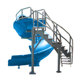 This is an Closed Flume Vortex Water Slide with a 360 degree twist and a spiral staircase in Blue. This slide has a seat height of 7-1/2 feet and is perfect for commercial or high-end residential inground pools. This heavy-duty slide will accommodate adults and kids up to 325 pounds.