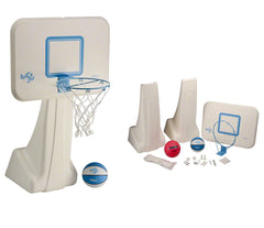 This model Water Volley has two stainless steel posts and is a portable, regulation size swimming pool volleyball set. The stainless steel pools are excellent for salt water pools. Water Volley includes two sturdy 1.90 inch stainless steel posts, two sturdy PVC stands, a heavy-duty 24 foot net, and volleyball. The net height is fully adjustable and net length can be shortened for custom fit.Made for commercial or residential pools with salt water systems.