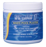 The one pound jar of E-Z Patch 1 White Plaster Repair is a plaster mixture designed for above ground repairs only (with water lowered). A 1 lb. jar will cover up to 1/3 square feet at 3/8 inches deep. A liquid bonder is included inside the kit.One of our most popular repair products, the White Plaster Repair color matches the original surface of most white plaster. You can make the repair an even brighter white by adding #EZP-TD (Bright White Cement Colorant). To change the color, you can add any cement type dye available at home repair stores. E-Z Patch also offers a PlasterScape Colored Plaster Repair with 5 light blues and grays (item #EZP1C-1).