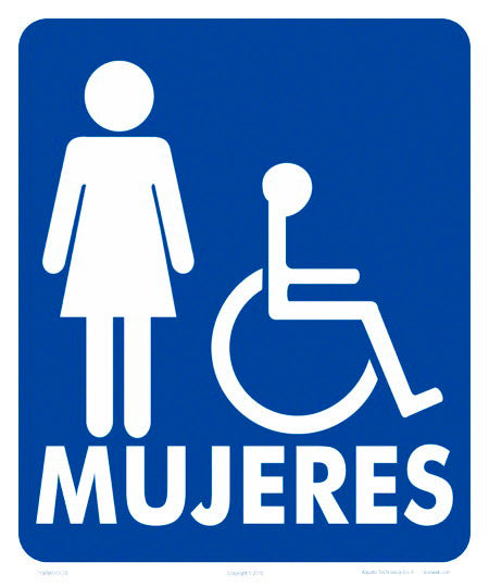 Women/Wheelchair Accessible Sign in Spanish - 10 x 12 Inches on Heavy-Duty Aluminum
